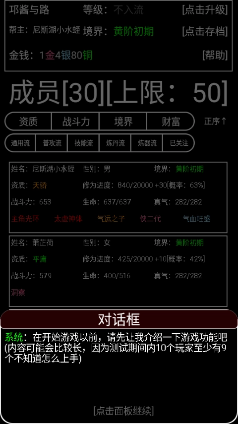3、帮派养成游戏需要玩家合理分配资源,来不断强化壮大自己的帮派