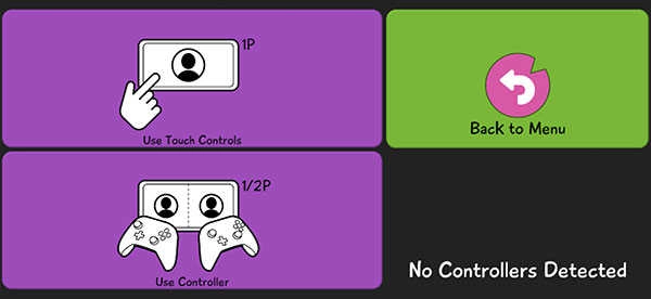 2、左侧紫色区域选择按钮控制方式,使用触屏还是游戏手柄操纵,手柄需要和好友组队联机才能体验。