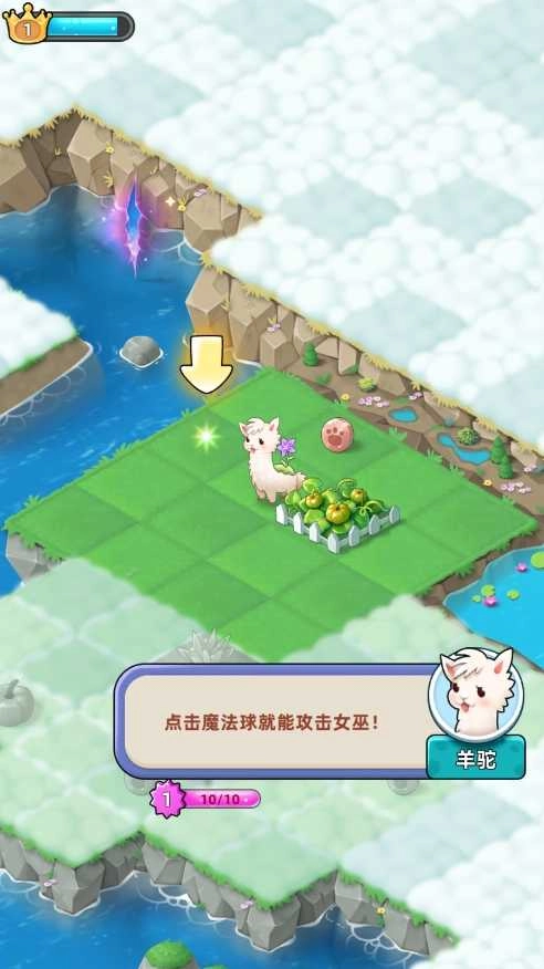 2、继续合并,可以发现新动物、新区域、新的物品,点击魔法球还可以攻击女巫,成功攻击女巫可以解锁区域;