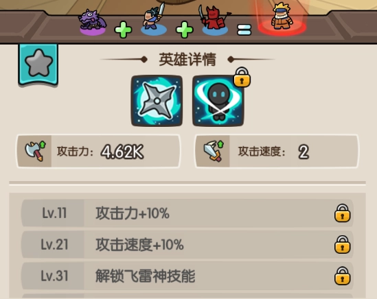 玩家召唤出的英雄能以三合一的方式合成更高级别的英雄,最终可以通过特定组合召唤出神话英雄横扫一切。