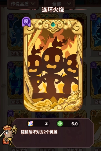 还有很多卡牌是稀有、史诗卡牌的升级版,比如愤怒火神、捣蛋波波、连环火烧等,都是单卡效果非常强力的卡牌。