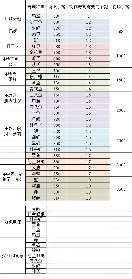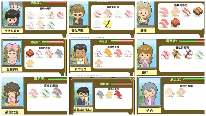 按照下面图鉴里特别宾客的喜好制作寿司,就能完成解锁啦。