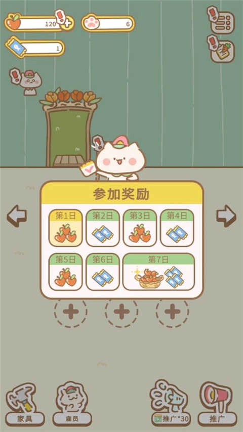 3、可以通过服务顾客、购买家具、完成成就图鉴、完成每日任务、与休息的员工交谈来提升