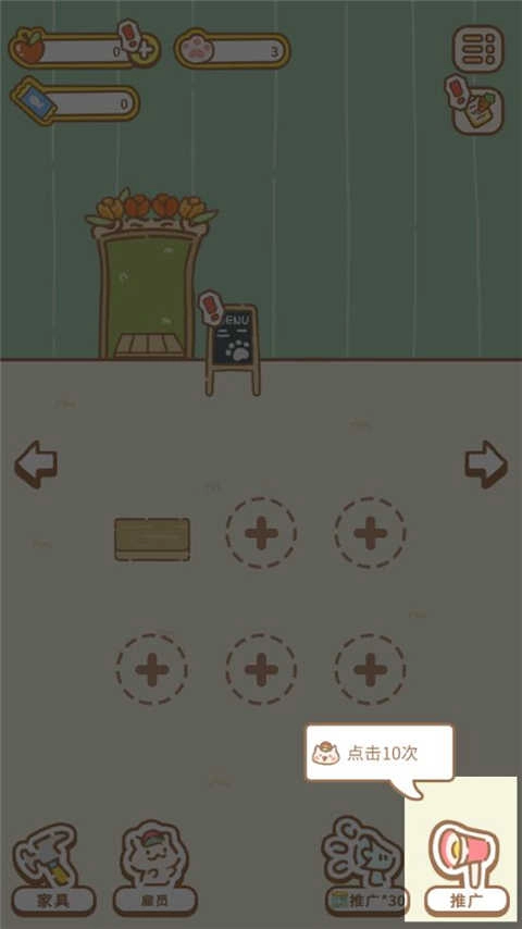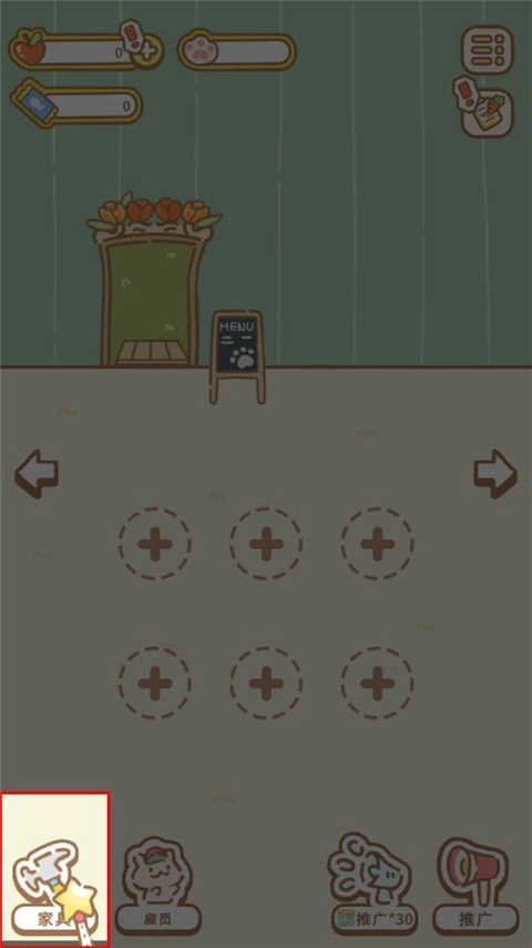 1、玩家进入游戏后,店内空空如也,得先购置一些家具。