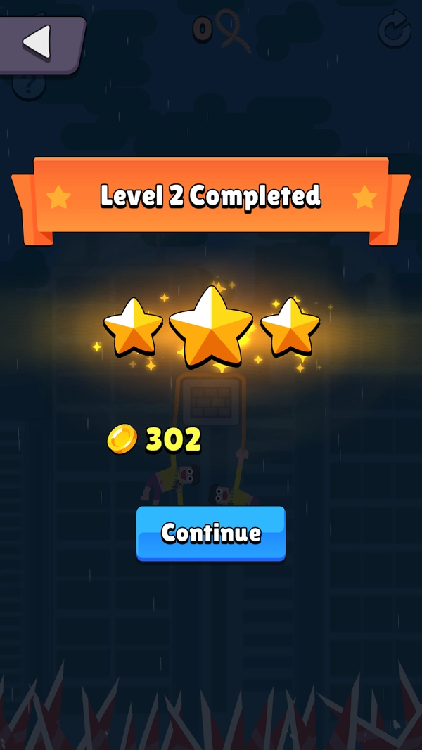 2、游戏关卡中玩家需要的是利用绳索来前进,通过不停的将绳索往节点上抛;