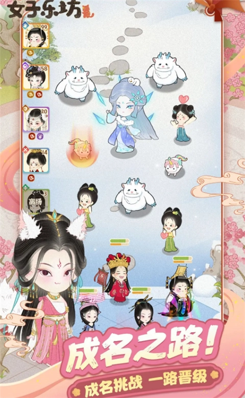 玩家可以招募包括四大美人、一代女帝在内的各色美人,全方位提升她们的文、武、乐、舞、画、颜、戏等技能,打造我朝第一女子天团,惊艳四方。