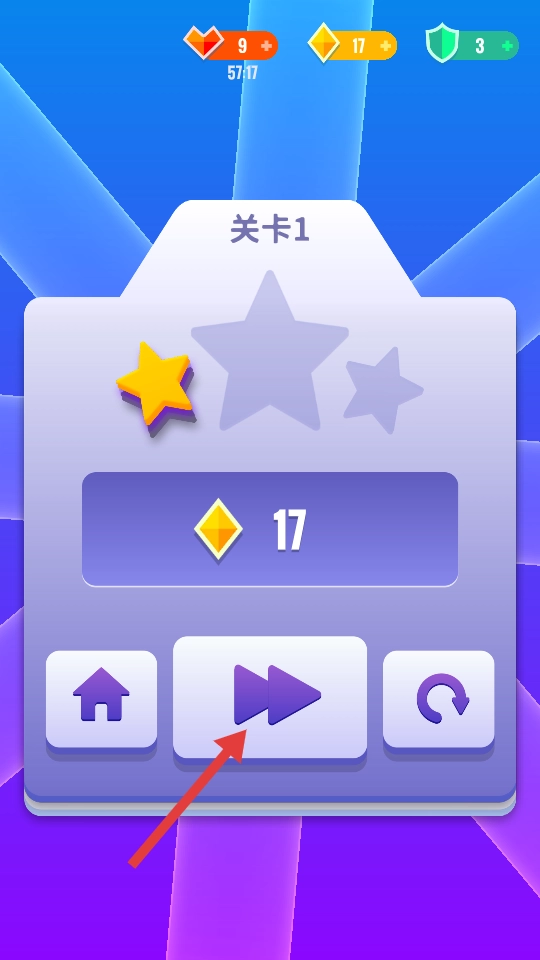 4、关卡结束后,点击箭头形状的按钮,进入下一关挑战。