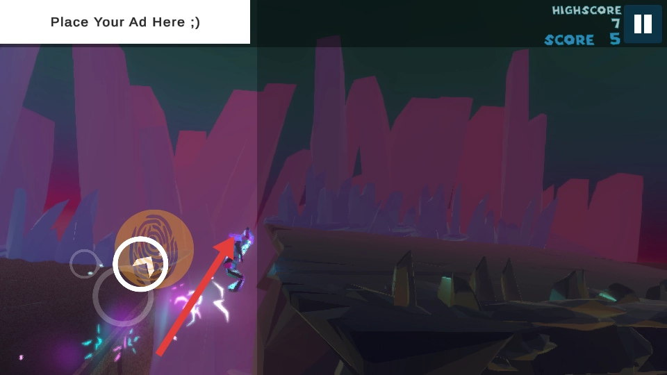 3、玩家操控角色时,遇到障碍物可借助技能,如点击指纹图标,让角色释放能量翻越障碍,继续前进获取分数。