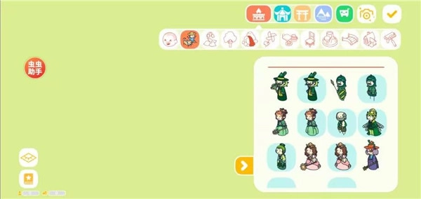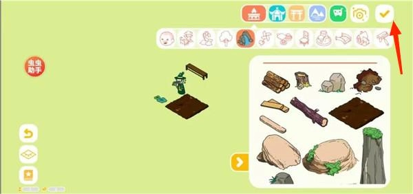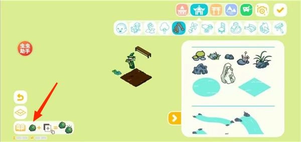 4、可以添加的物品种类众多,有各种可爱的人物模型、花草树木、山石流水、桌椅等家具、各种奇特的建筑等,可以自由组合