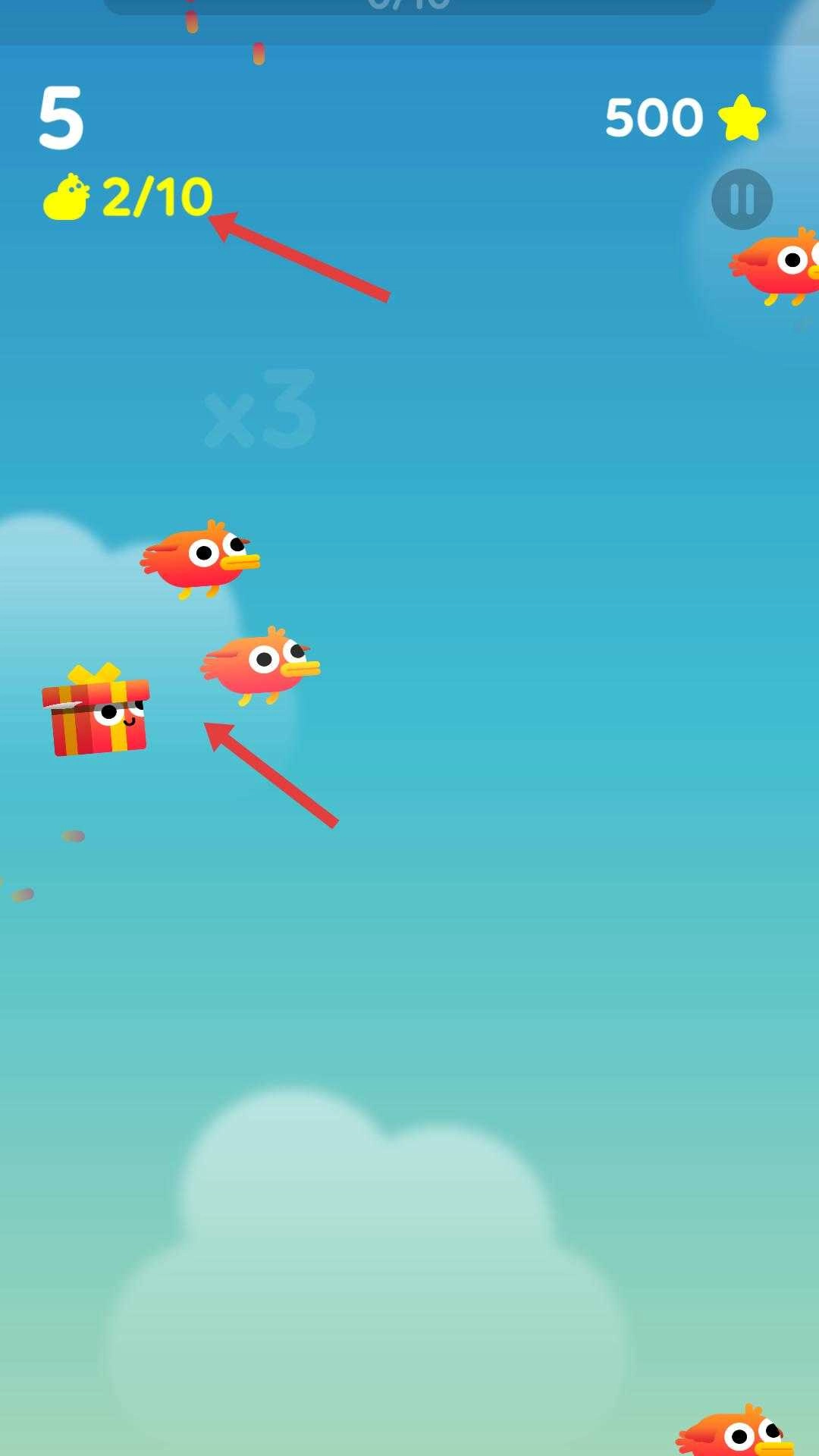 2、游戏过程需收集指定数量的小鸟,界面会显示收集进度,同时要避开或应对飞行中的小鸟等元素,推进收集进程。