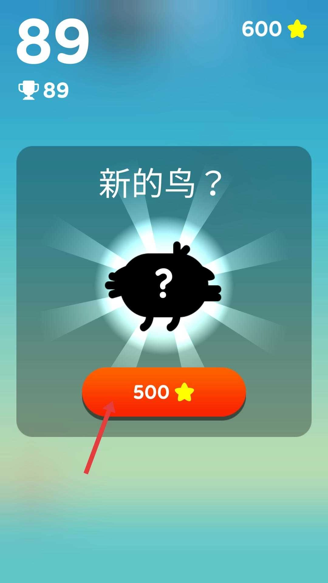 4、成功收集足够小鸟后,会解锁新的小鸟,界面显示新的鸟,消耗500星星可解锁这只新的小鸟,丰富游戏内容。