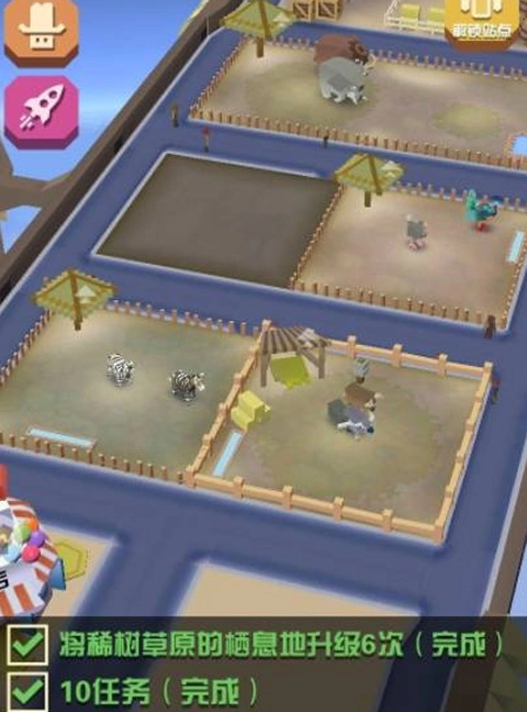 根据抓到的动物数以及搭建的栖息地数量会增加开业的门票,开业可以说是获得最多金钱的方式,不过冷却时间非常长。