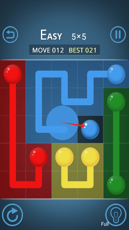 3、游戏关卡中,点击圆点滑动出路线,连接相同颜色的圆点来完成连接。