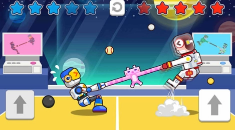 双人口袋大作战最新版是一款休闲有趣的双人对抗游戏,采用Q版卡通风格设计,画面精致细腻,人物造型十分有趣。游戏中有蓝色小人和红色小人两个角色,这种经典传统的对抗配对设定下,玩家只需控制其中一个小人,持续点击右方按钮,将对方拉过白线即可获胜。