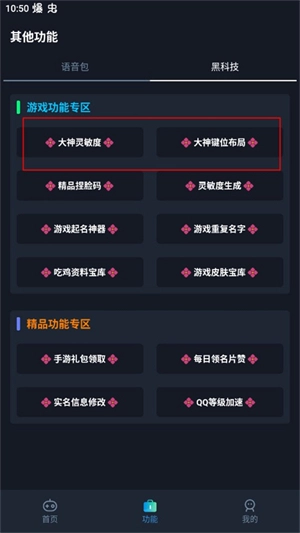 2、可以在功能栏当中找到黑科技选项,在这里面有着各种大神的参数设定,可以自由选择使用。