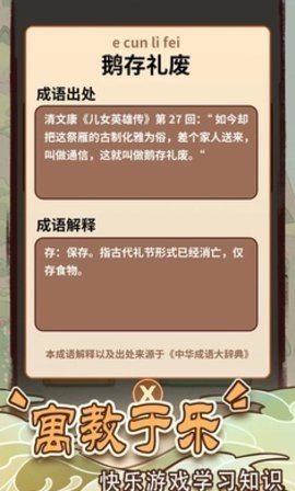 2、每个关卡都会遇到不同的成语,这些成语都源自中国成语。