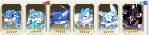 阵容说明:夏娜和冰鲸负责控制,梦豚召唤的小海豚可当前排,黑潮提供范围伤害和沉默效果,灵狐负责净化和持续治疗。