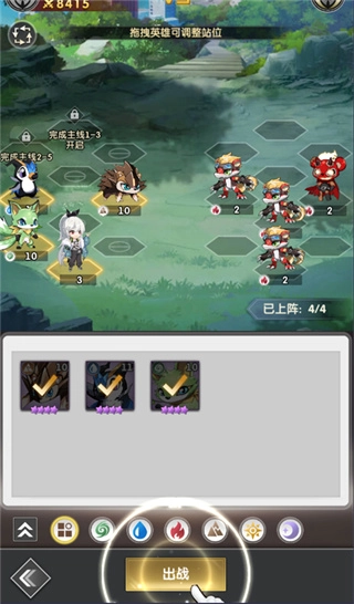 2、选择你需要上阵的卡牌