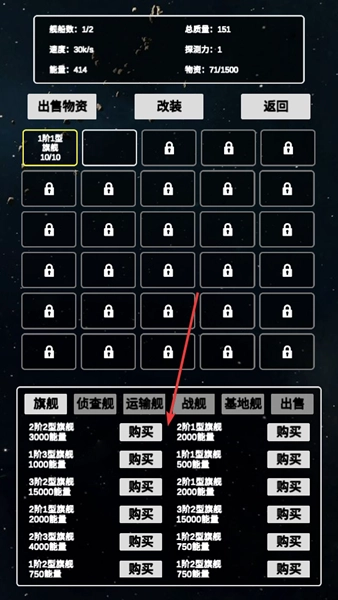 4、在交易界面点击【购买】按钮,消耗能量购买飞船加入舰队