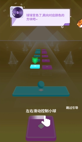 2、玩法上,游戏考验玩家的反应速度和手指灵活性。玩家需要通过滑动屏幕来控制小球的方向,当小球变色时,要迅速跳向相应颜色的方块,紧张又刺激!