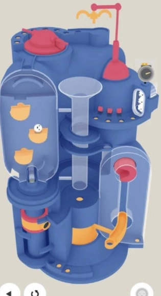 这台机器构造复杂,但操作起来却很简单——玩家只需拉动拉杆,释放出一颗小球,然后注视着小球进入机器内部即可。