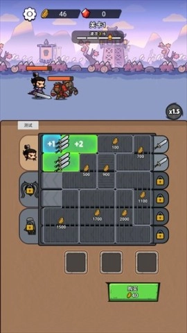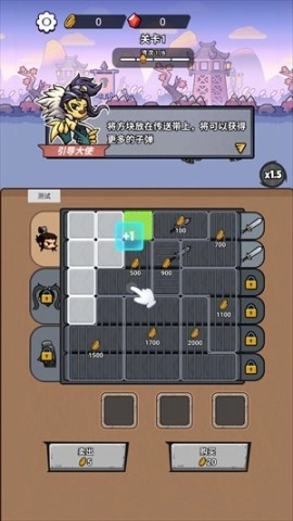 2、利用金币购买并获取新的方块,拖拽到对应角色的装备区域,子弹数量将提升至+1。