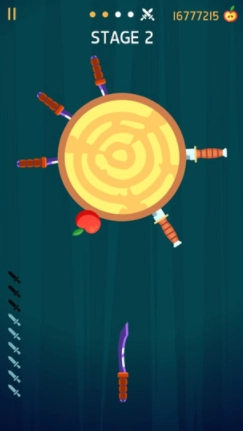 飞刀打击(Knife Hit)是一款竖屏闯关的休闲小游戏,玩法类似见缝插针,由知名的Ketch公司出品。它的画面柔和、操作流畅,既考验反应能力,又锻炼观察力,玩起来让人沉浸其中、欲罢不能,趣味性十足。游戏中,玩家需要在小小的靶子上钉入指定数量的飞刀,找准时机将飞刀甩向苹果,击碎靶子即可完成挑战。