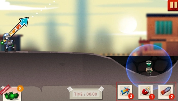1、在你实在想不到怎么通关的时候,你可以选择导弹在摧毁一切,但是会有使用限制。