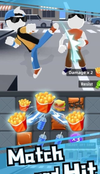 街头打架是一款消除玩法的格斗休闲小游戏,玩家在游戏里得通过消除食物来获取战斗动力,这里有多种角色可供自由选择,能体验不同的攻关手段,还能一击击溃敌人。