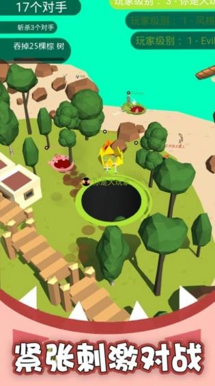 2、黑洞吞噬疯狂发育一款魔幻3D吞噬生存冒险。黑洞的力量是无限的。首先你要利用吞噬模式让自己变得更强。同时,你还必须与其他玩家进行战斗。大洞吞没了小洞。谁吞下的物品越多,就能获得更多的积分,利用自己的策略在不同的竞技场中获胜。