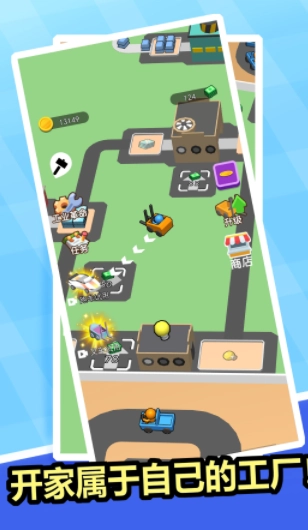 玩家开局仅有一台机器和一名员工,需逐步发展壮大!升级设备能在有限的厂区内,最大程度提升生产效率!通过金币购买机器、招募工人并建造新工厂,以赚取更多收益!