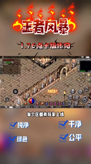 王者风暴1.76点卡版传奇是近期新上线的一款点卡版传奇游戏。它精准还原了经典传奇的核心内容,从场景到玩法都保留着最纯正的复古风格。游戏不存在任何隐藏消费陷阱,玩家只需购买一张点卡即可畅享全部内容,游戏内的各类材料与装备均可通过打怪掉落获取,除了基础点卡费用外,不会产生其他额外消费。