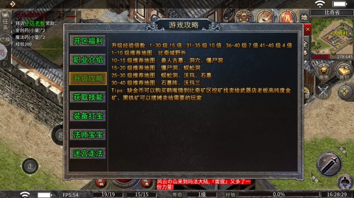 3、10-15级推荐地图:兽人古墓、洞穴、僵户洞。