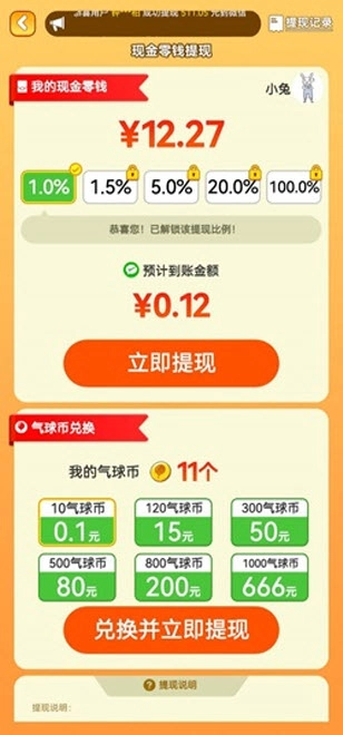 1、下载并安装气球消消乐游戏,打开游戏后按照界面提示进行试玩,完成后可申请提现0.1元。