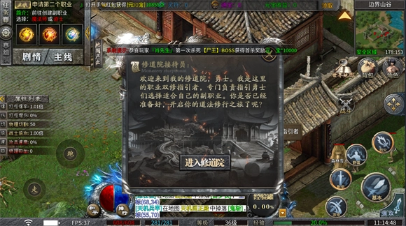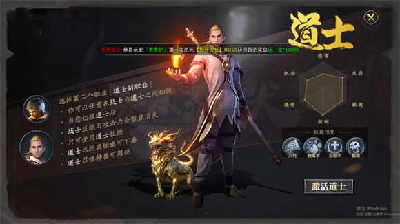 2、副职业选择:玩家可以选择道士或魔法师作为副职业,这增加了游戏的策略性和技能组合的多样性。