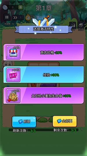 4、水果击败敌人升级后可以从三种强化中选择一种加强自身能力