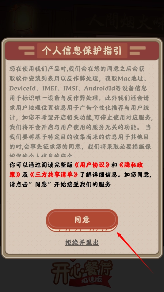 1、打开游戏后仔细阅读用户协议,点击同意按钮即可进入登录界面。