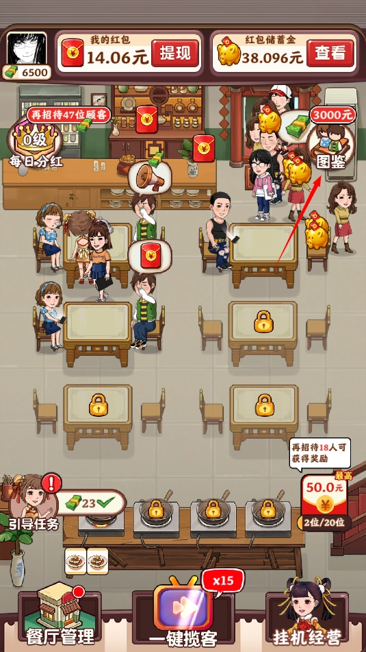 1、主界面点击顶部"图鉴"图标进入顾客资料库。