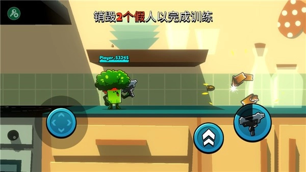 1、进入游戏后,你会看到界面上有移动方向控制以及跳跃、射击功能。