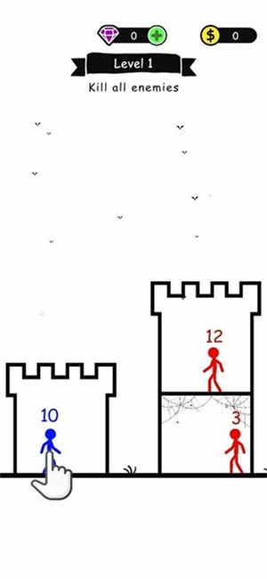 2、然后大家通过拖动自己的火柴人攻击比自己低级的火柴人来提升自己的等级。