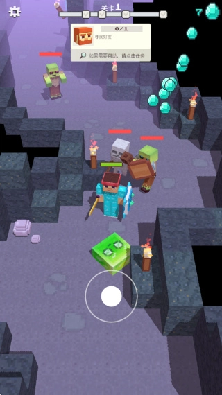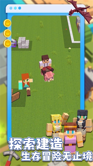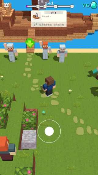 1、进入游戏后你会操控一个小方块人四处走动,边探索边完成任务,还要想办法找到伙伴一起去对付来捣乱的恶龙。