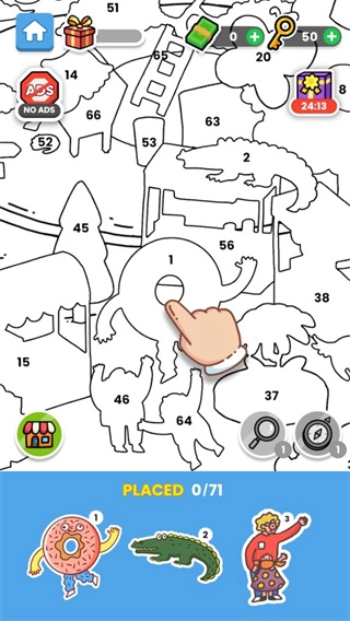 2、提示工具会自动帮助玩家找到那些不容易发现的涂色区域,减少寻找的难度;