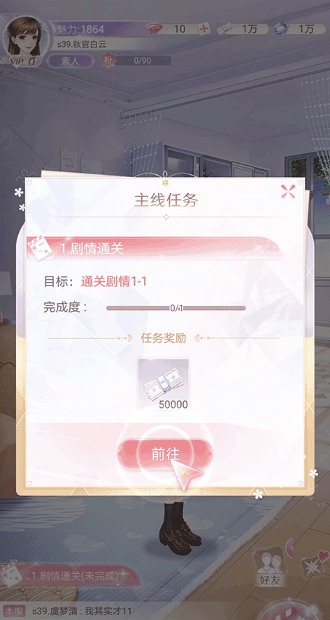 1、运行游戏后玩家在换装过后就可以开始剧情游戏了,找到并点击“剧情通关”选项;