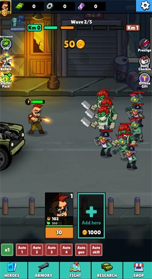 2、战车驾驶与战斗:玩家可以驾驶各种战车,利用它们来闯过僵尸群,碾压敌人,同时使用战车上的武器进行射击。
