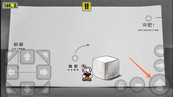 除了一开始在地图界面会显示带方向键的虚拟键盘外,打Boss时这些键盘都会隐藏起来,所以你得记住除方向键之外其他键位的位置。