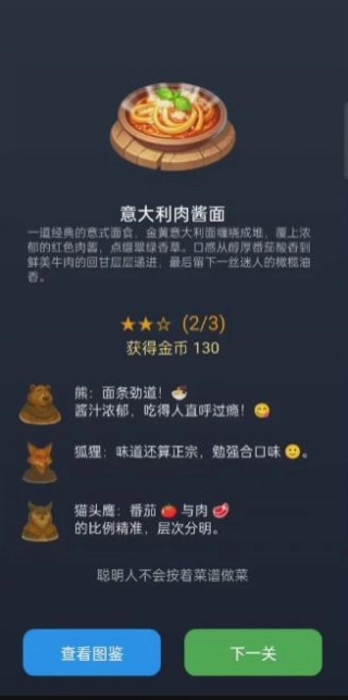 2、动物评审团个性鲜明,评语既幽默又具有惊喜感,会让每次料理评分都变成一种期待。