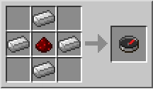 7、指南针。四个铁锭和一个红石就能合成一个指南针。在查看指南针时,红石指针指向即为出生点方向(或者床的方向),将指南针拿在手里可根据指针回家。