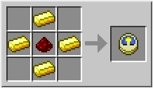 8、钟。由一个红石粉和四个金锭来合成出一个钟。钟会旋转来符合太阳以及月亮在天空中的位置,现实游戏中的时间。但是如果在下界或者末地时,钟都不能正常显示时间。