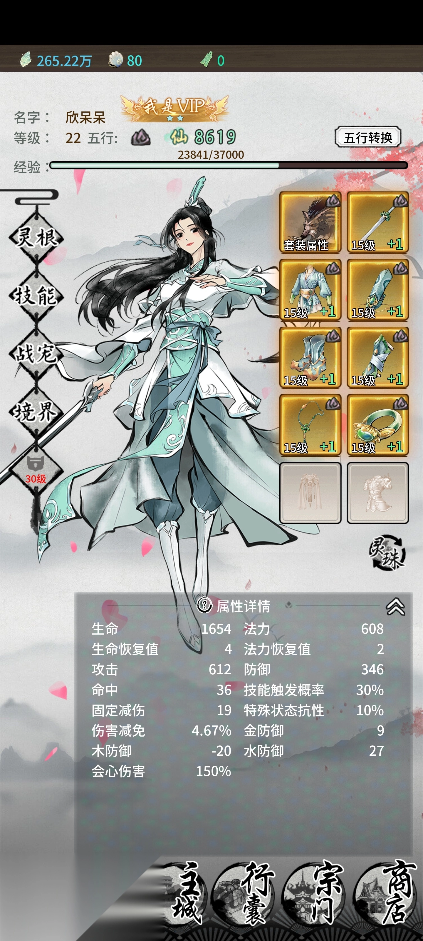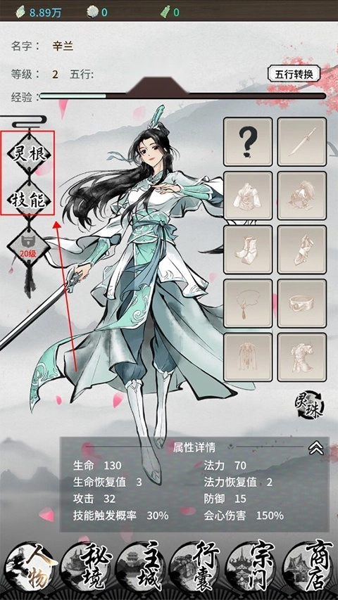 5、主角也有各种技能可以学习,还可以通过消耗特定材料来提升灵根等级,大幅提升战力。