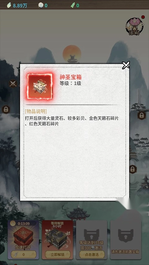 6、游戏内还有各种宝箱可以开启,等待一定时间,开启后即可获得大量奖励,宝箱等级越高,奖励越丰富。